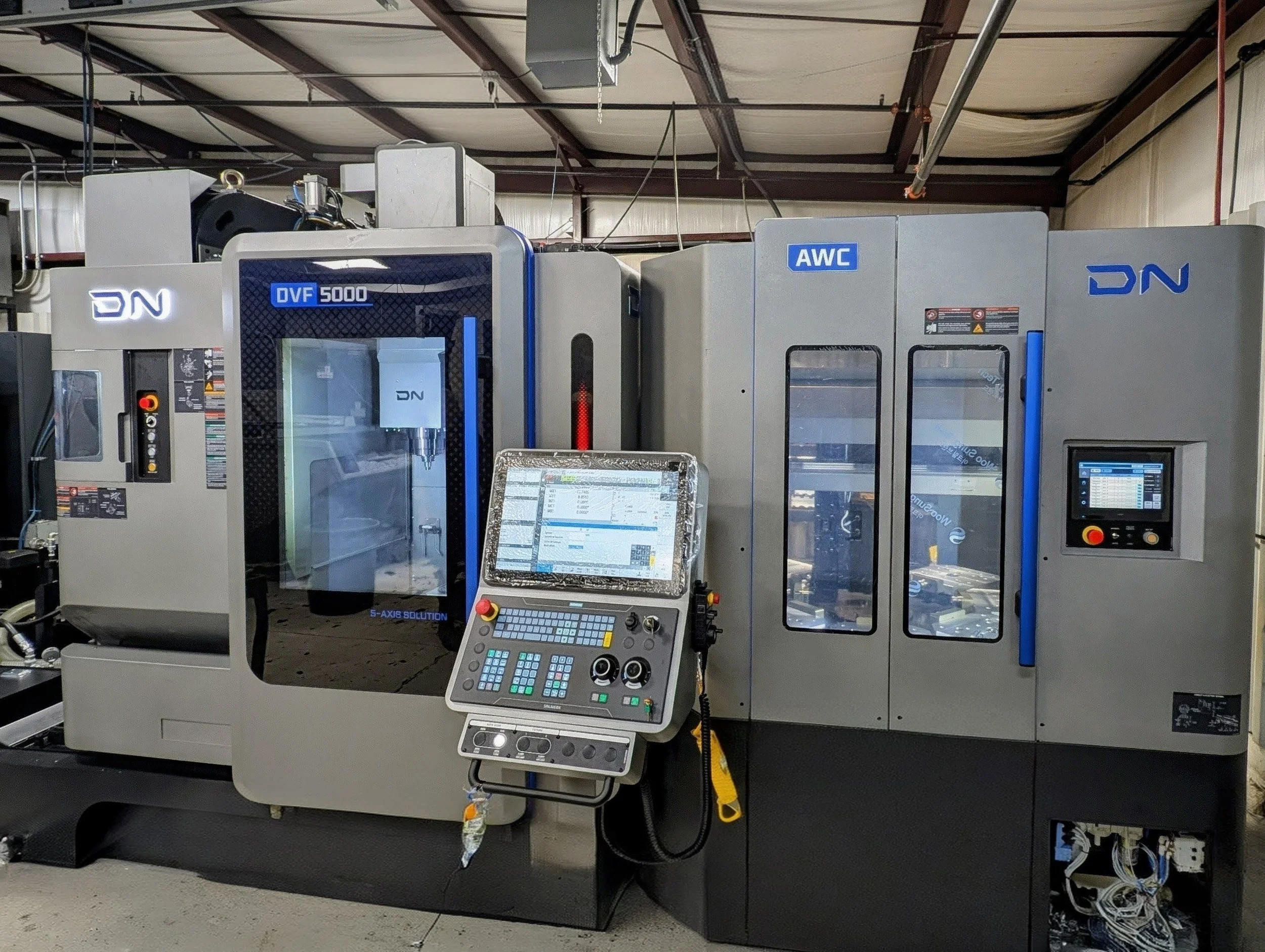 (1) DN Solutions DVF 5000 5-axis, 8 pallet work changer, Lights Out Machining